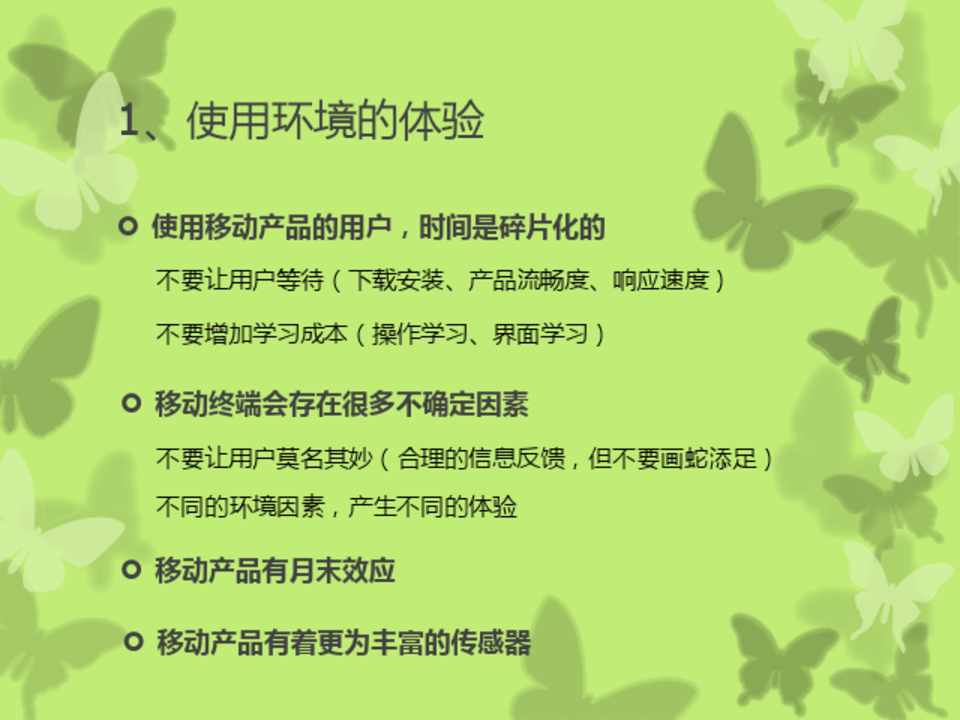 不要让用户等待(下载安装、产品流畅度、响应速度) 不要增加学习成本(操作学习、界面学习)