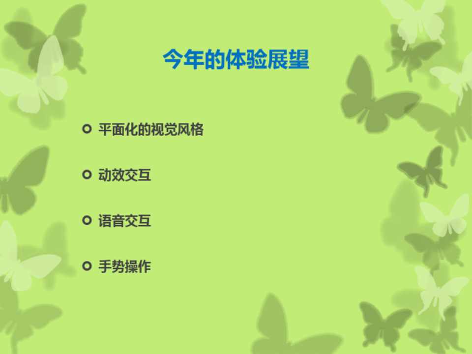 平面化的视觉风格 动效交互 语音交互 手势操作