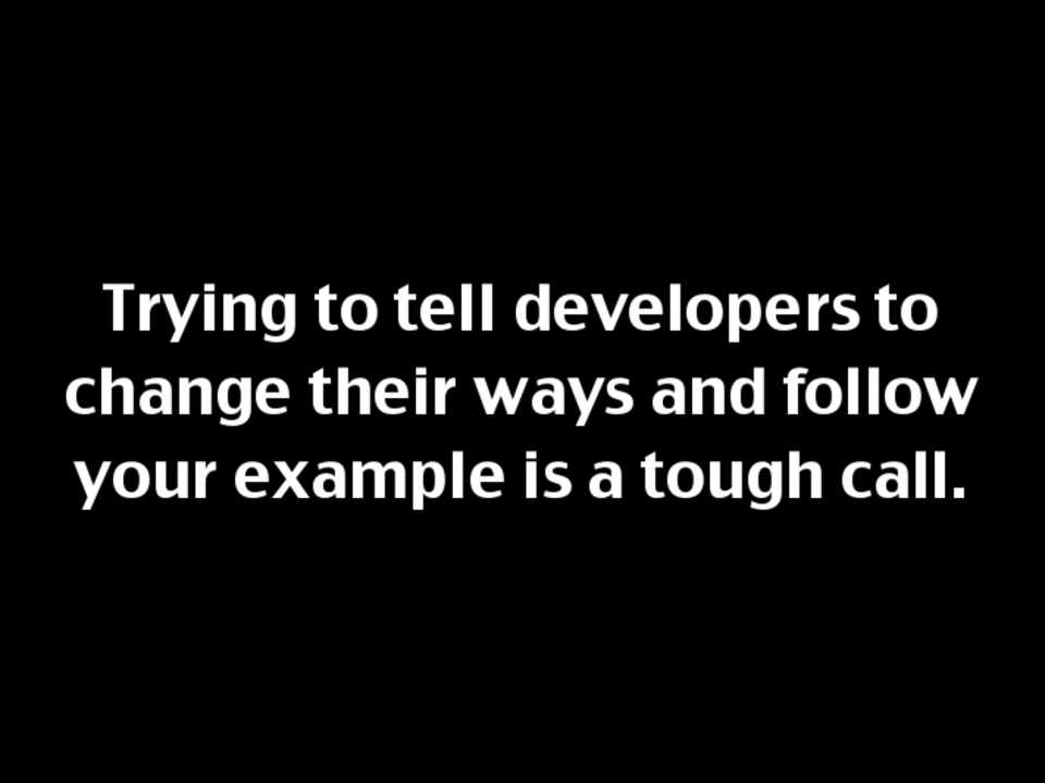 Trying to tell developers to change their ways and follow your example is a tough call.