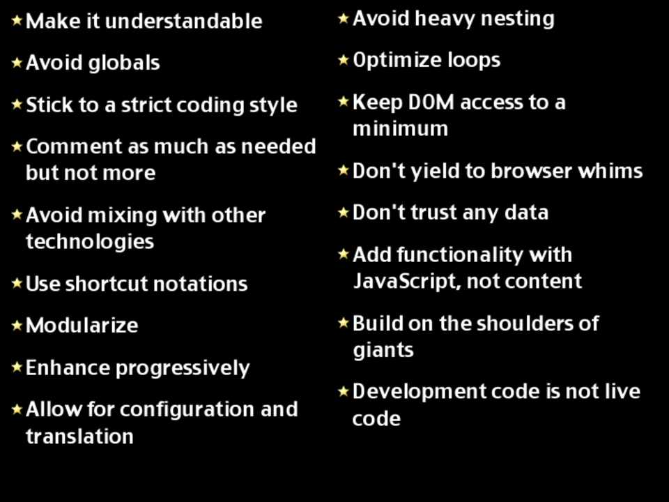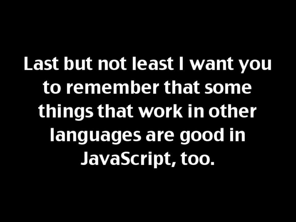 Last but not least I want you to remember that some things that work in other languages are good in JavaScript, too.