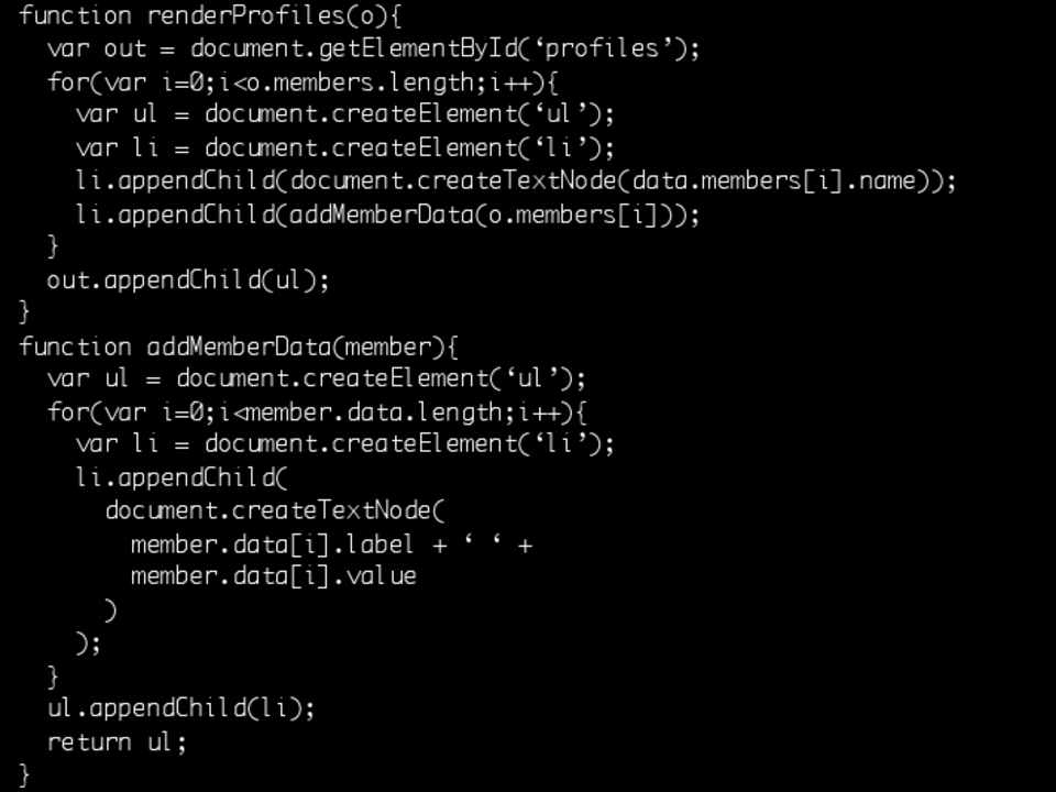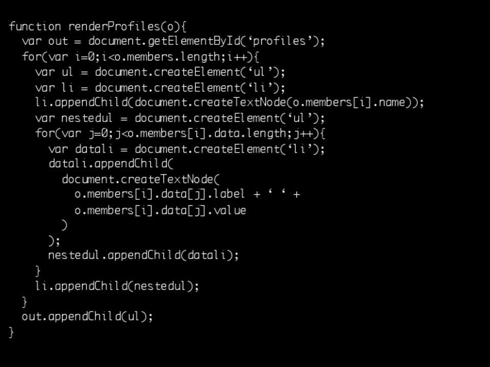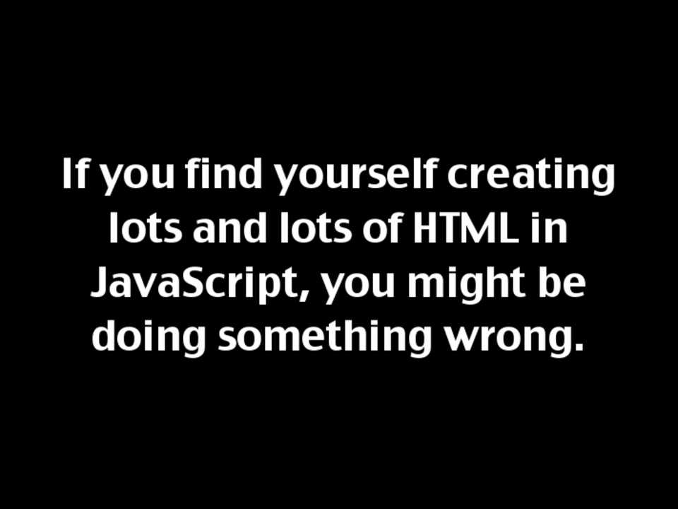 If you find yourself creating lots and lots of HTML in JavaScript, you might be doing something wrong.