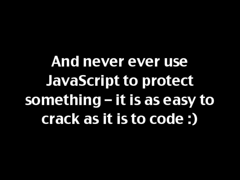 And never ever use JavaScript to protect something – it is as easy to crack as it is to code :)