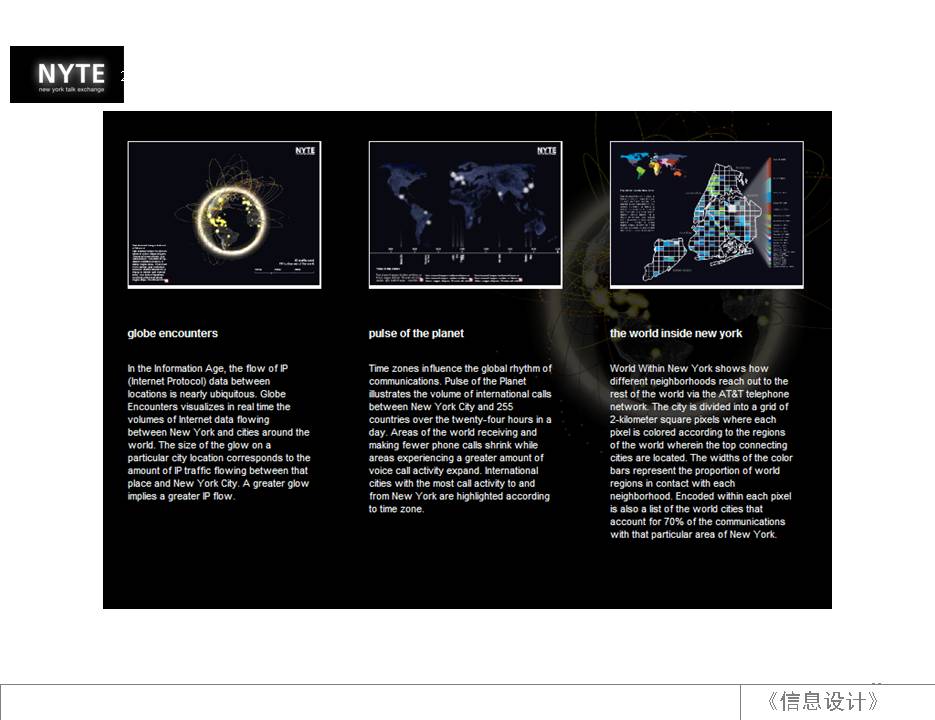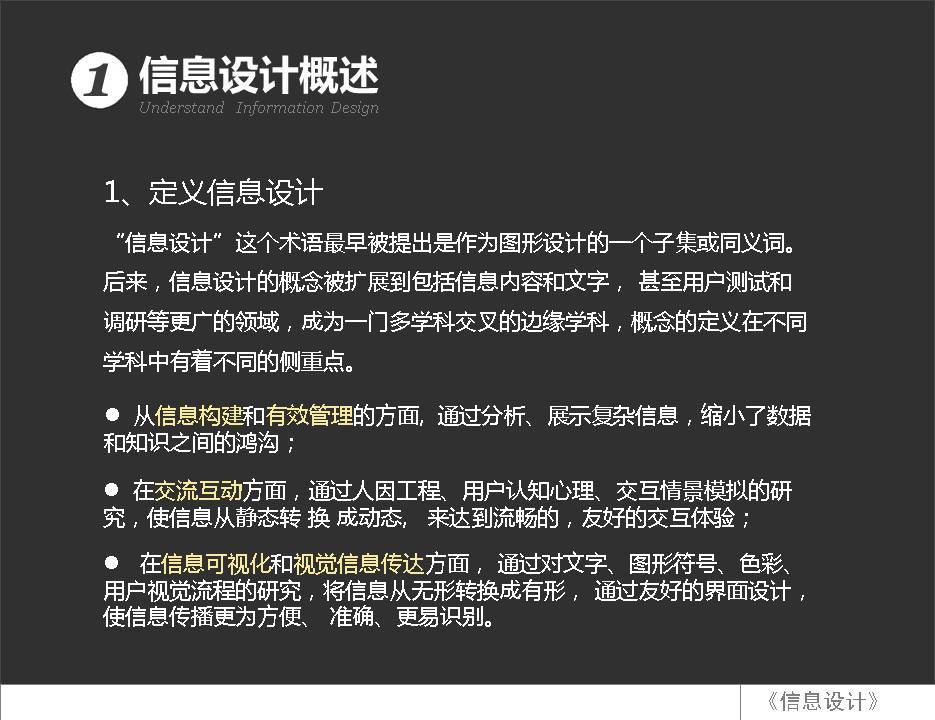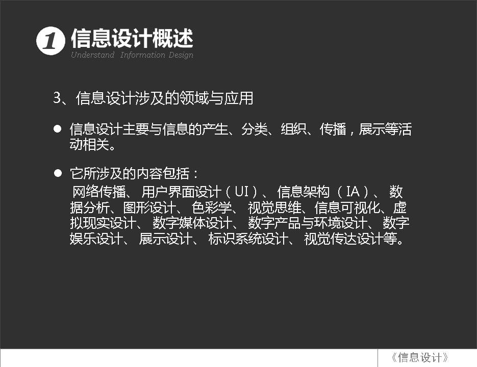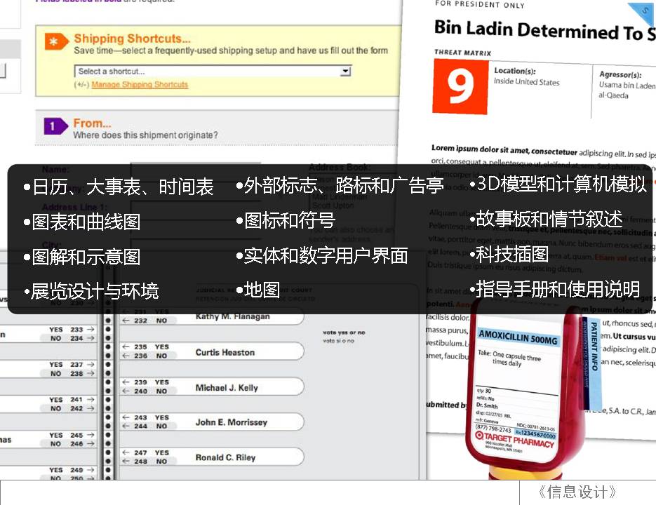 信息设计主要与信息的产生、分类、组织、传播,展示等活动相关。