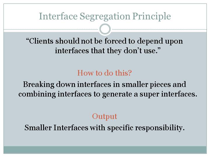 “Clients should not be forced to depend upon interfaces that they don’t use.”