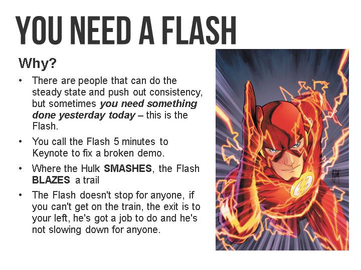 There are people that can do the steady state and push out consistency, but sometimes you need something done yesterday today – this is the Flash.