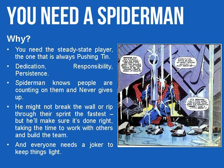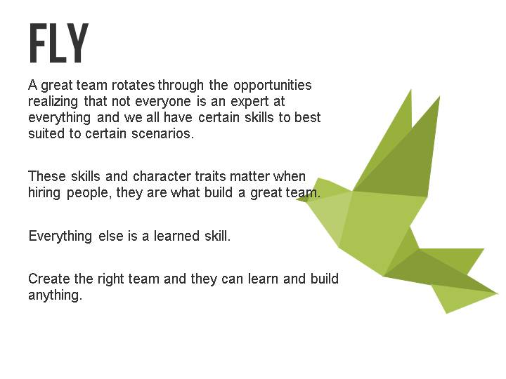 A great team rotates through the opportunities realizing that not everyone is an expert at everything and we all have certain skills to best suited to certain scenarios.