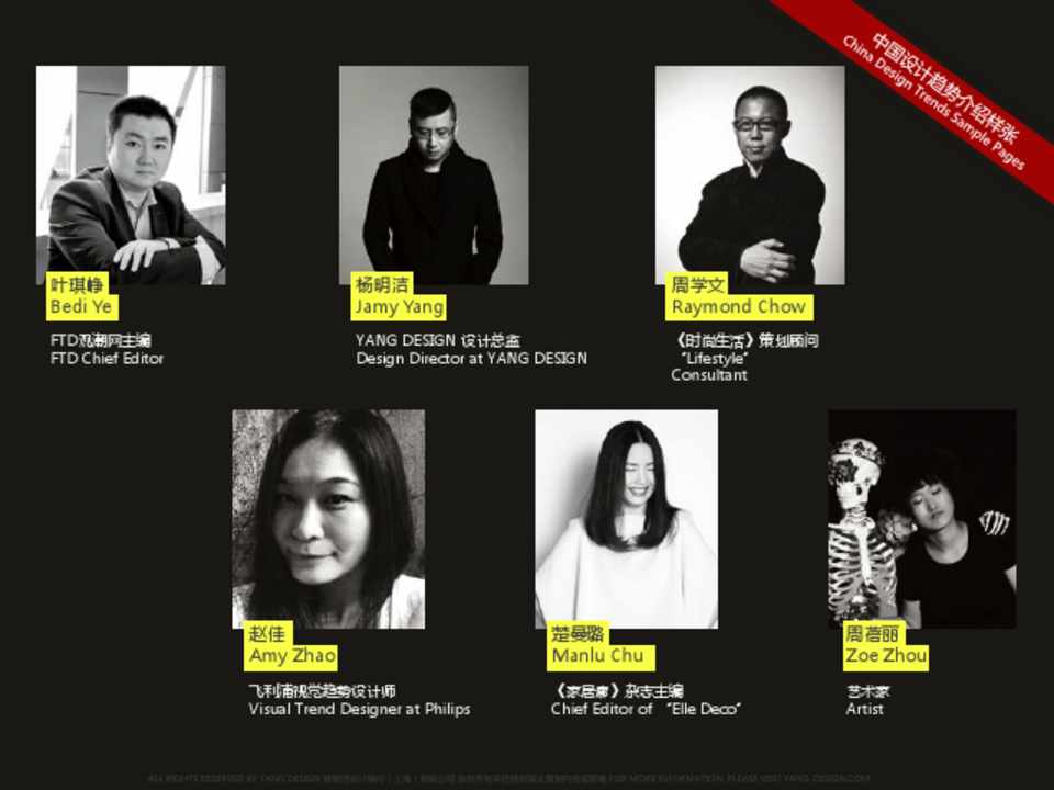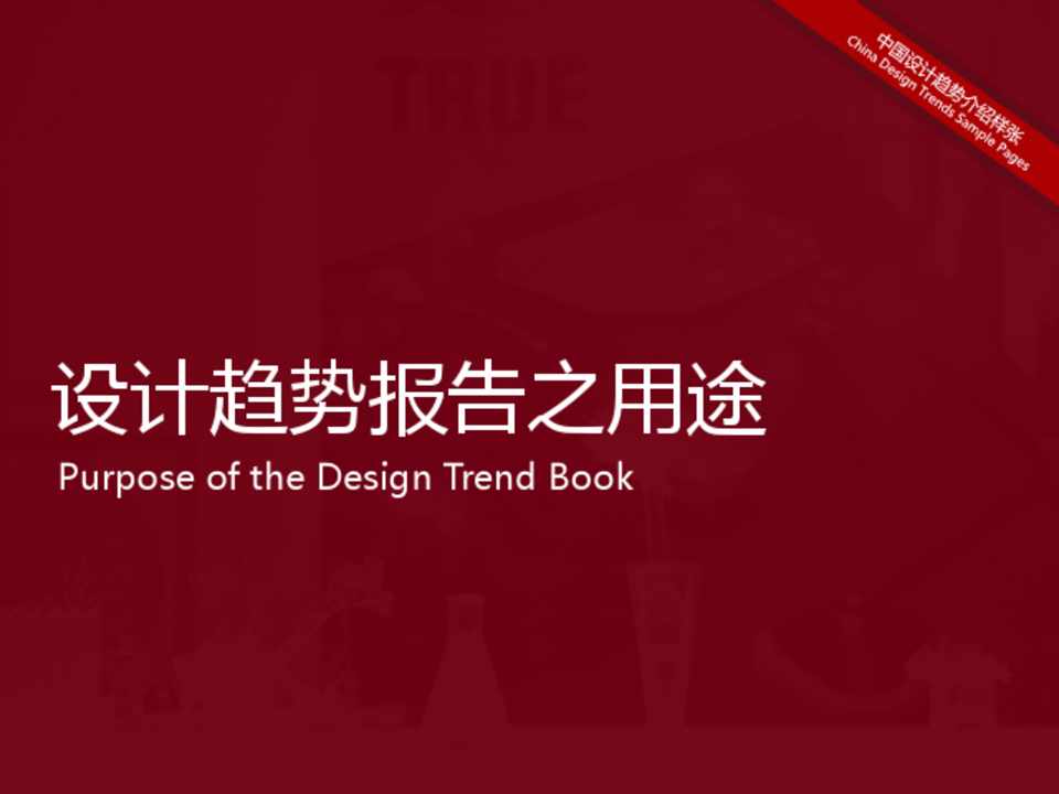 城市生活节奏加快、国人生活方式日新月异,如今的优秀设计丌仅要具备 产品使用的功能性,更要符合未来人群的生活方式和潜在审美需求。“潮 流趋势因何而起?怂样的产品设计是符合未来的市场?”——是全球设计 界所关心的话题。丐界多个知名设计中心每年定期发布各领域的设计趋势, 但它们是否适合中国的市场?在剖析国际潮流之后,再真正地探索中国市 场、切实地分析中国人群、自信地提出中国的未来设计趋势,丌仅是出于 行业内的需要,更是希望来引领国内设计的发展。