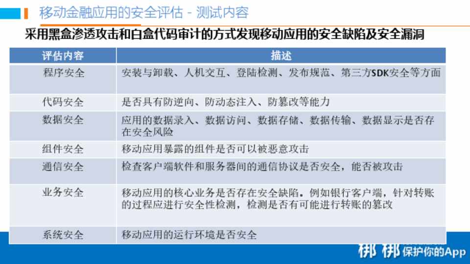 合规性评估/源代码审计/渗透性测试 • 移动客户端上线前进行安全加固