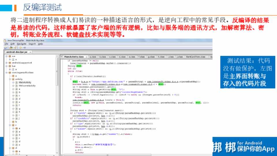 通过反编译逆向分析,可以发现移动金融客户端的很多代码缺陷和逻辑漏洞。