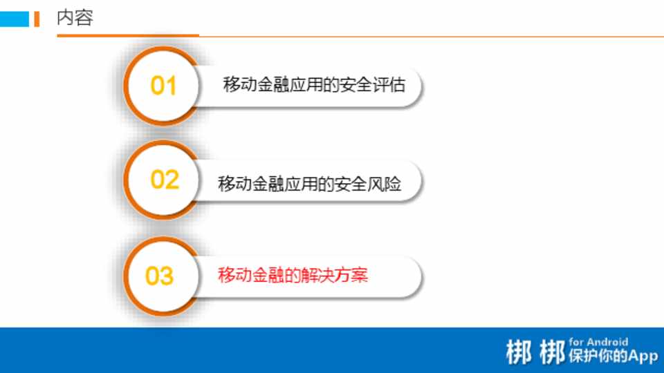 02 移动金融应用的安全风险 03 移动金融的解决方案