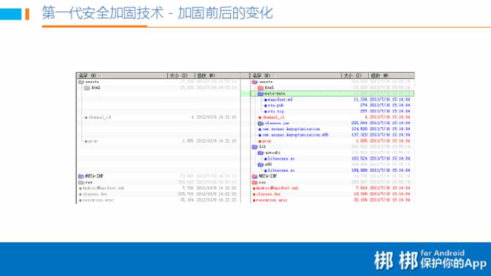 • 梆梆Android保护技术针对APK中的所有类型的文件都可以进行保护