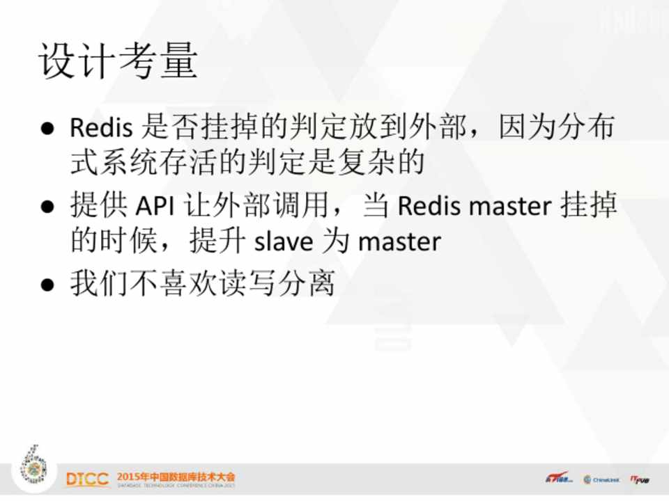 ● Redis 是否挂掉的判定放到外部,因为分布 式系统存活的判定是复杂的