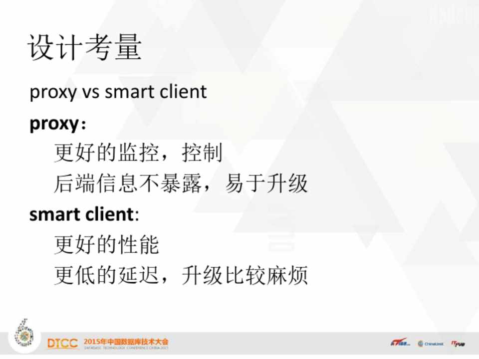 更好的监控,控制 后端信息不暴露,易于升级 smart client: 更好的性能 更低的延迟,升级比较麻烦