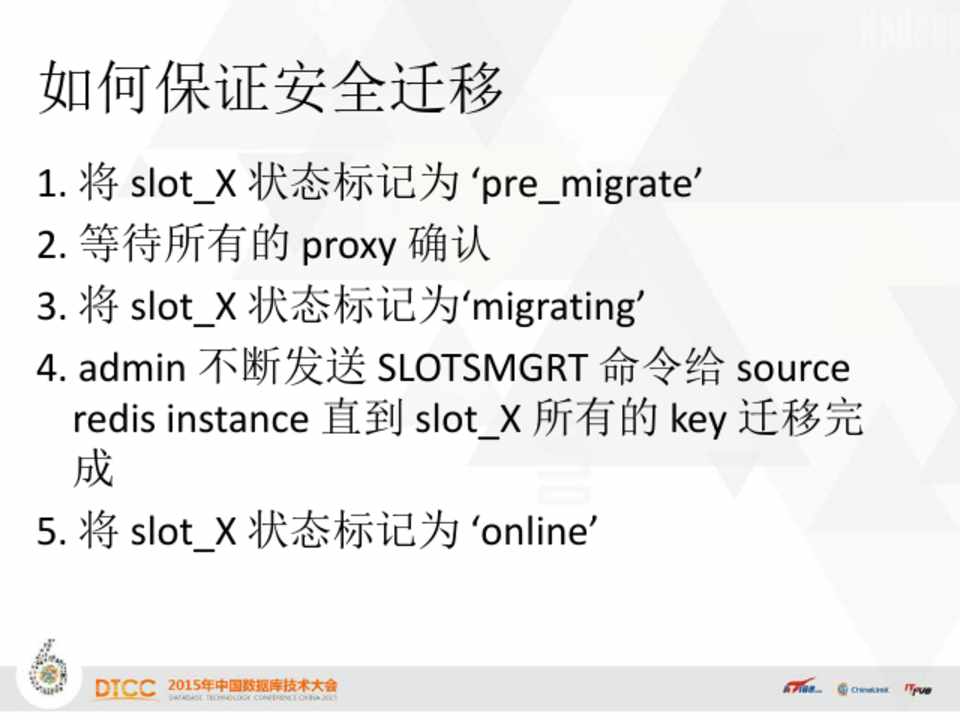 redis instance 直到 slot_X 所有的 key 迁移完 成 5. 将 slot_X 状态标记为 ‘online’