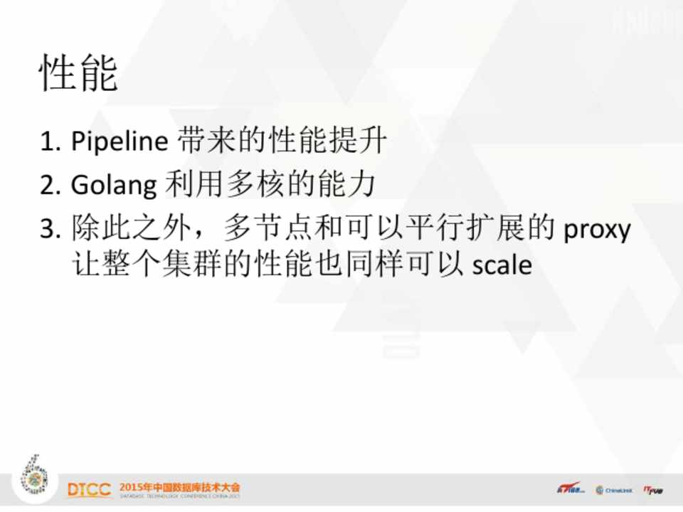 1. Pipeline 带来的性能提升 2. Golang 利用多核的能力 3. 除此之外,多节点和可以平行扩展的 proxy