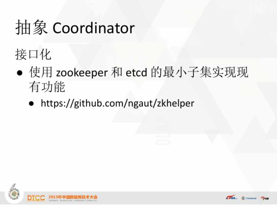 接口化 ● 使用 zookeeper 和 etcd 的最小子集实现现