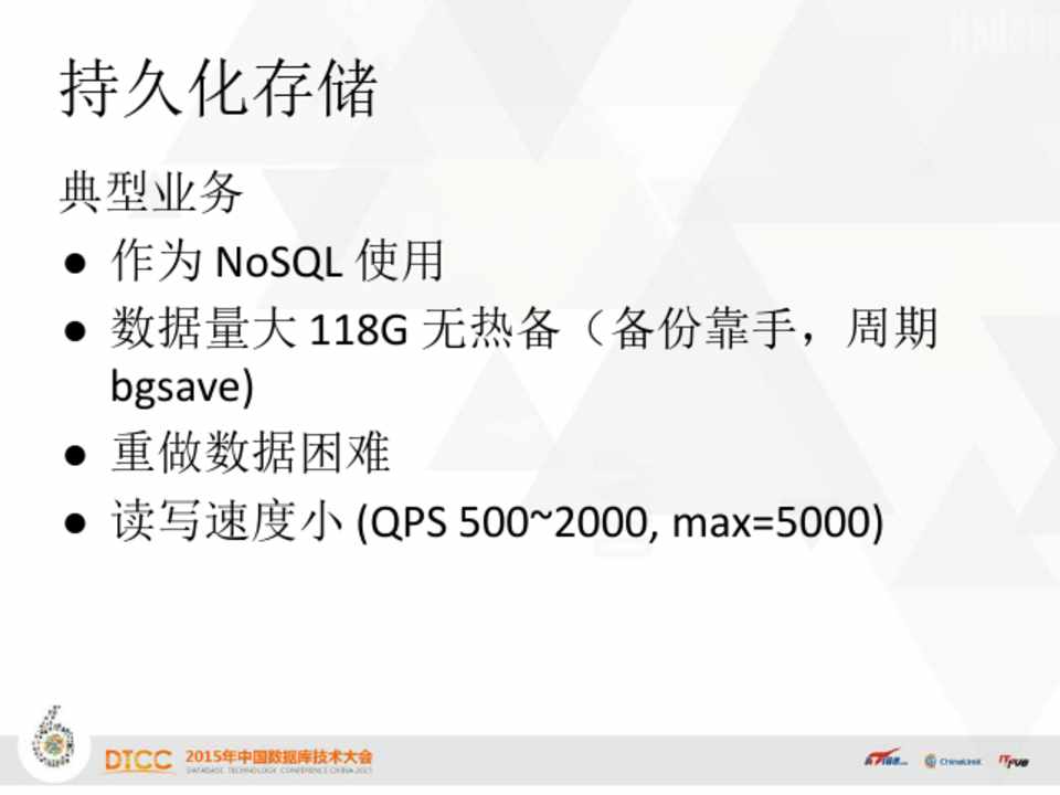 bgsave) ● 重做数据困难 ● 读写速度小 (QPS 500~2000, max=5000)