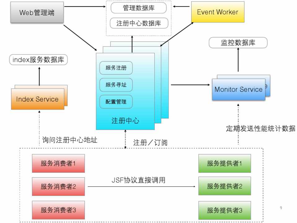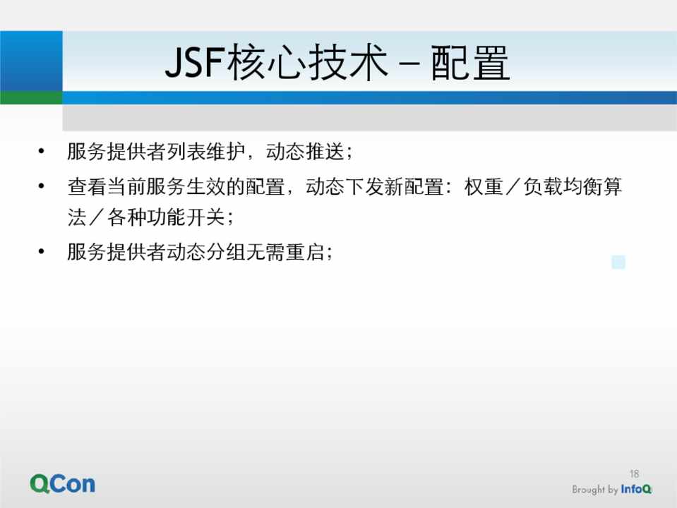 • 服务提供者列表维护,动态推送; • 查看当前服务⽣生效的配置,动态下发新配置:权重/负载均衡算