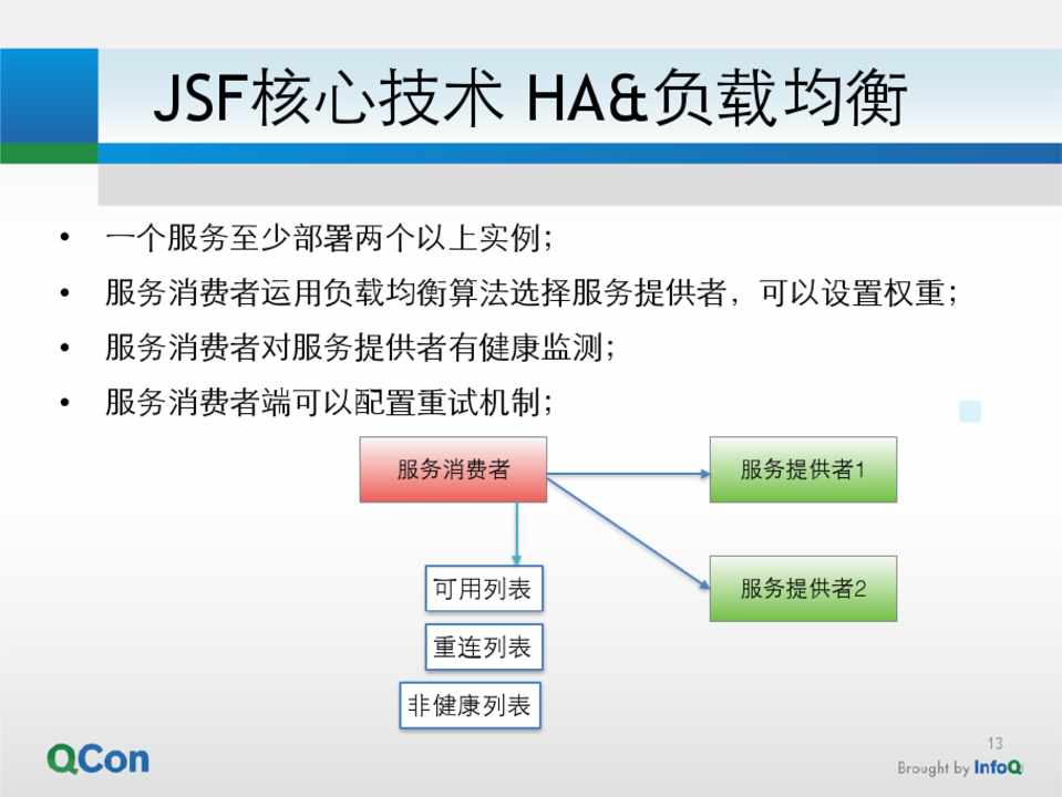 • ⼀一个服务⾄至少部署两个以上实例; • 服务消费者运⽤用负载均衡算法选择服务提供者,可以设置权重; • 服务消费者对服务提供者有健康监测; • 服务消费者端可以配置重试机制;