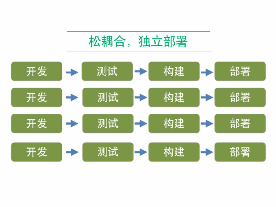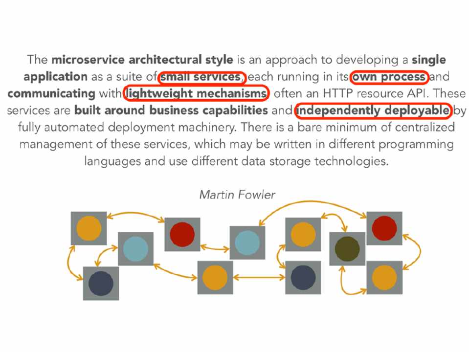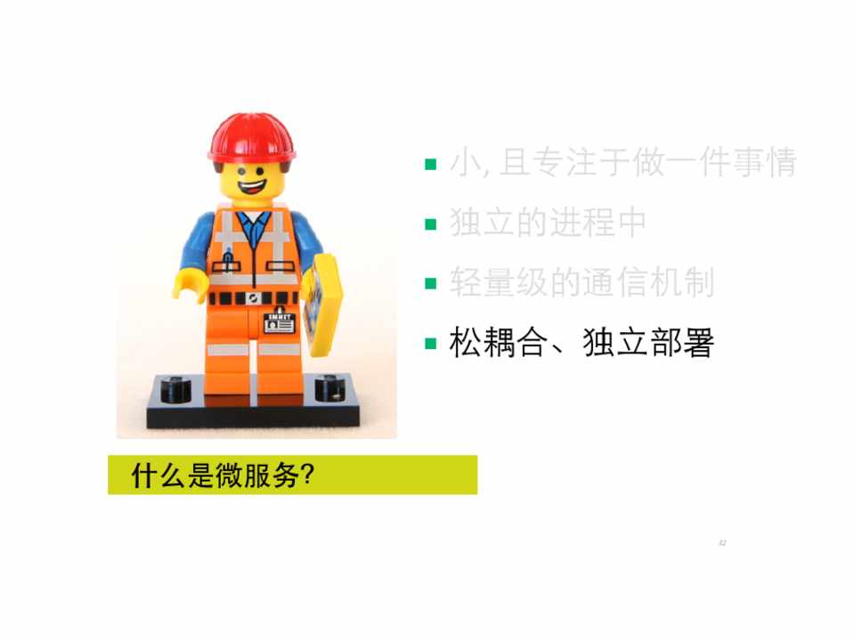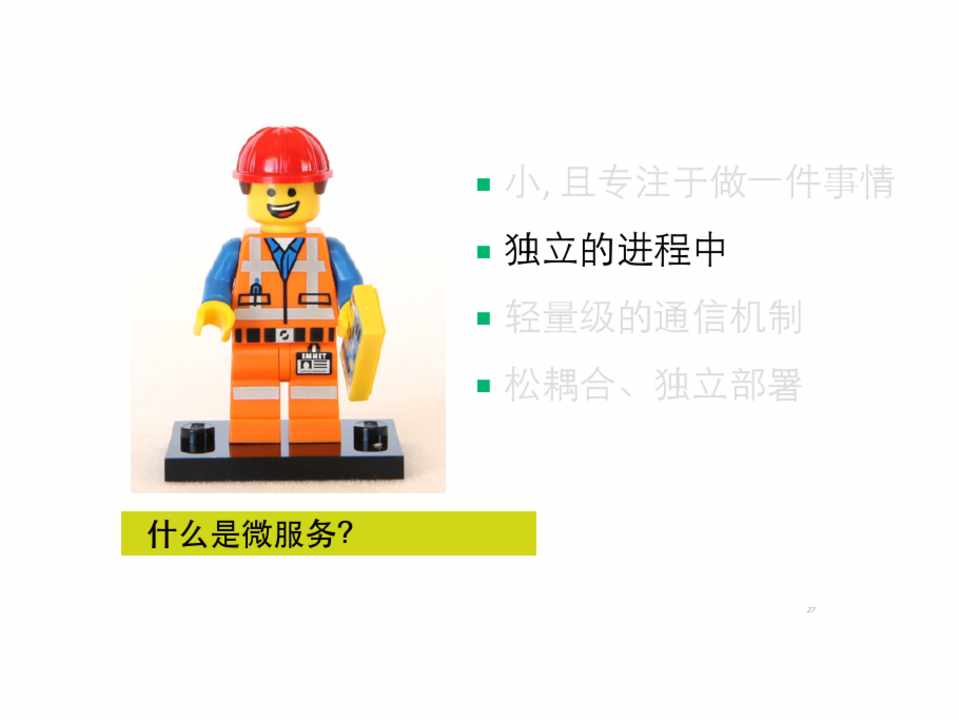 且专注于做⼀一件事情 ■ 独⽴立的进程中 ■ 轻量级的通信机制 ■ 松耦合、独⽴立部署