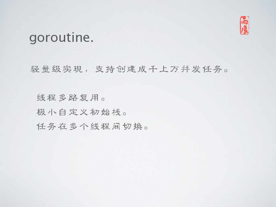 线程多路复用。 极小自定义初始栈。 任务在多个线程间切换。