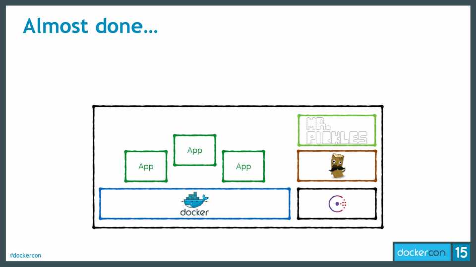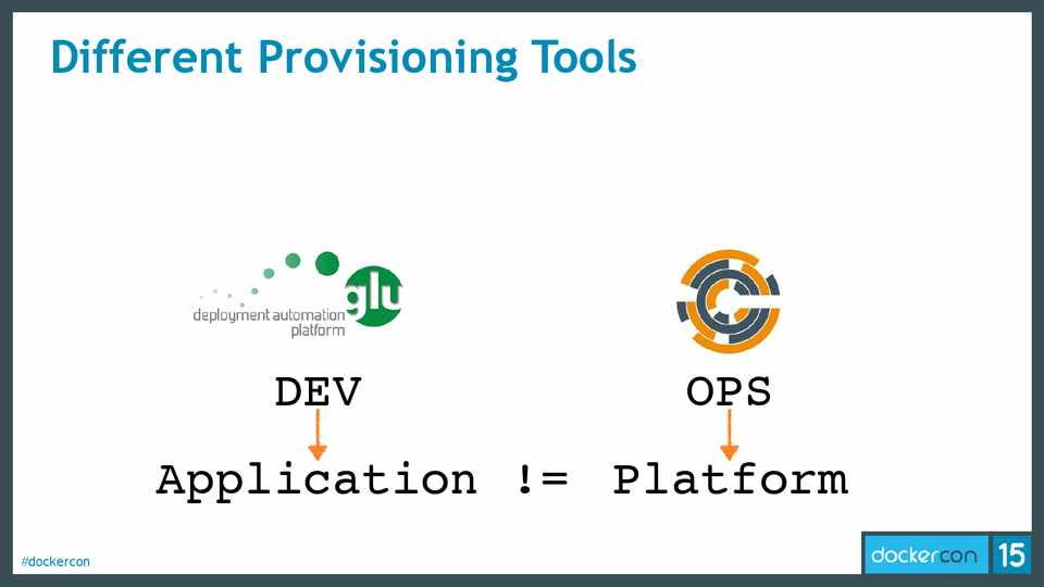 - Docker - repeatable applications - Chef - repeatable infrastructure — Environment aware - Jenkins - repeatable releases