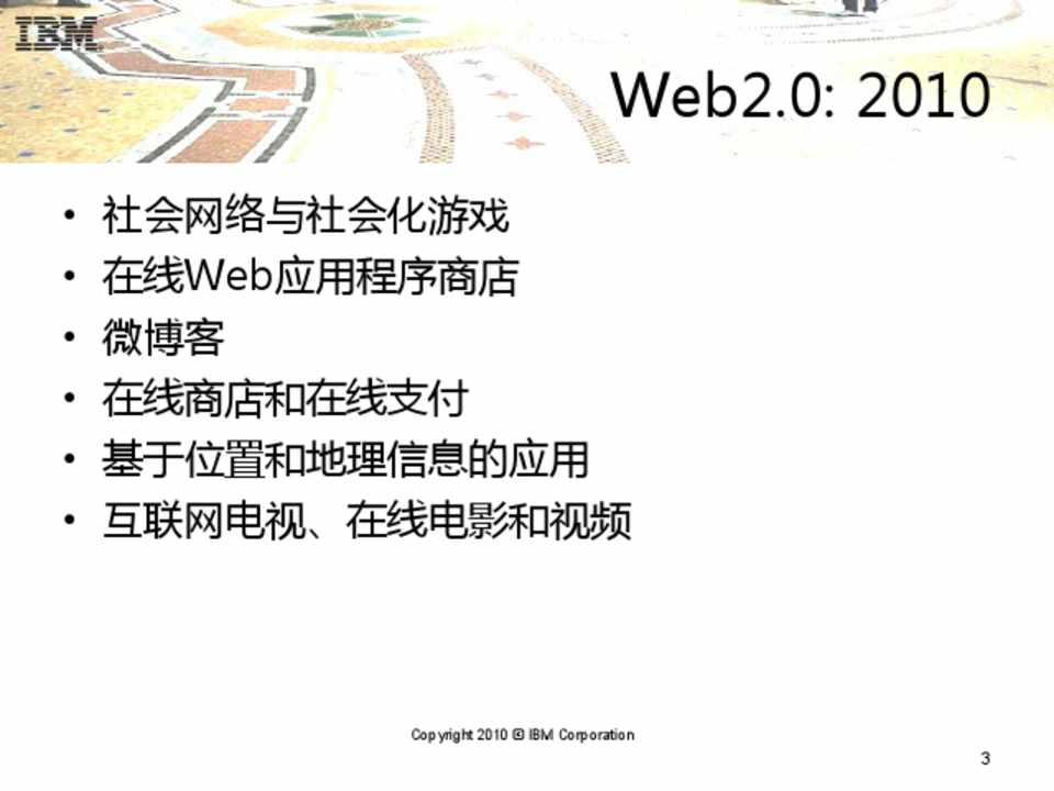 • 社会网络与社会化游戏 • 在线Web应用程序商店 • 微博客 • 在线商店和在线支付 • 基于位置和地理信息的应用 • 互联网电视、在线电影和视频