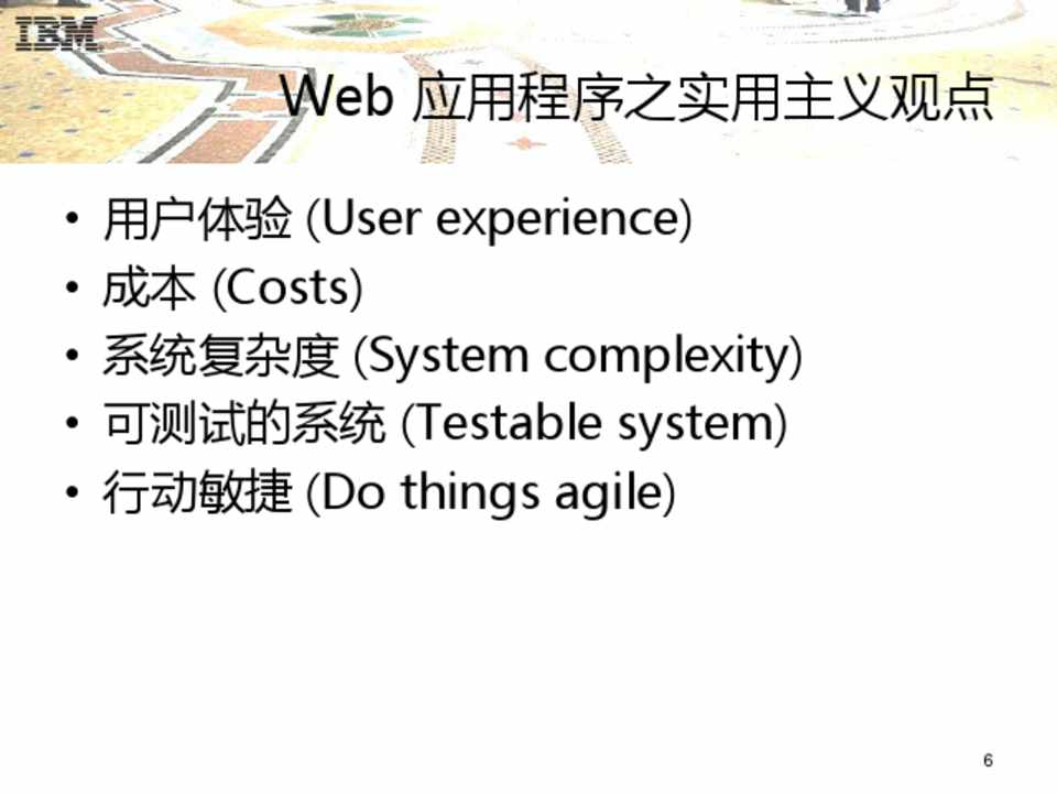 • 简单易用的用户体验设计 • 通过良好的架构管理系统复杂度,控制运营成本 • 构建可测试的系统 • 把握敏捷行劢的原则和方法 • 注重应用程序安全和用户隐私