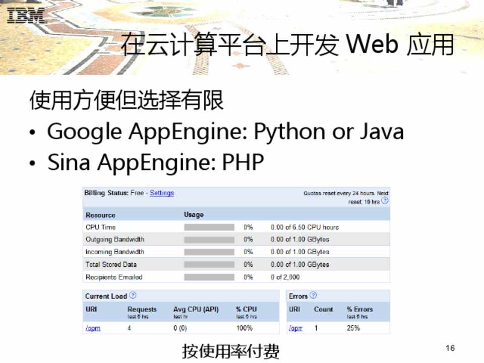 使用方便但选择有限 • Google AppEngine: Python or Java • Sina AppEngine: PHP