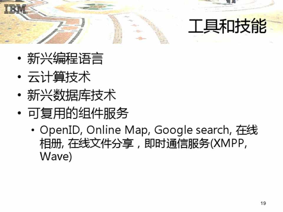 • OpenID, Online Map, Google search, 在线 相册, 在线文件分享,即时通信服务(XMPP, Wave)