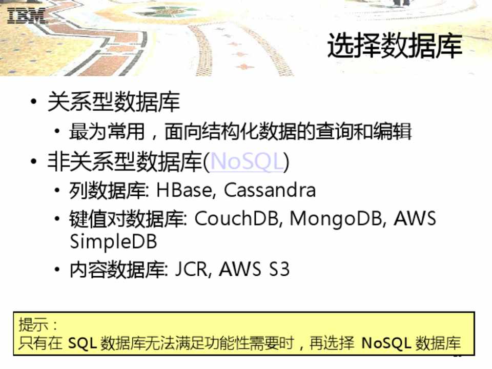 提示: 只有在 SQL 数据库无法满足功能性需要时,再选择 NoSQL 数据库