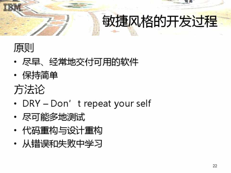 • DRY – Don’t repeat your self • 尽可能多地测试 • 代码重构与设计重构 • 从错误和失败中学习