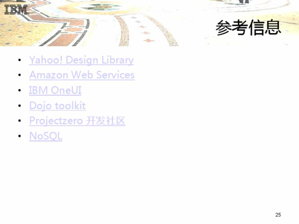 • Yahoo! Design Library • Amazon Web Services • IBM OneUI • Dojo toolkit • Projectzero 开发社区 • NoSQL