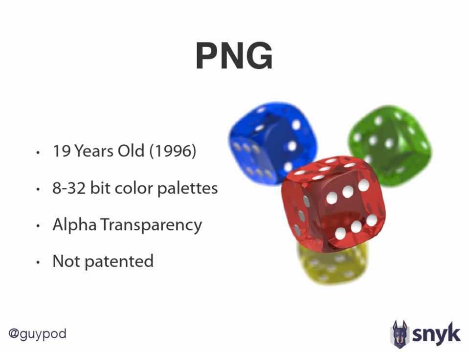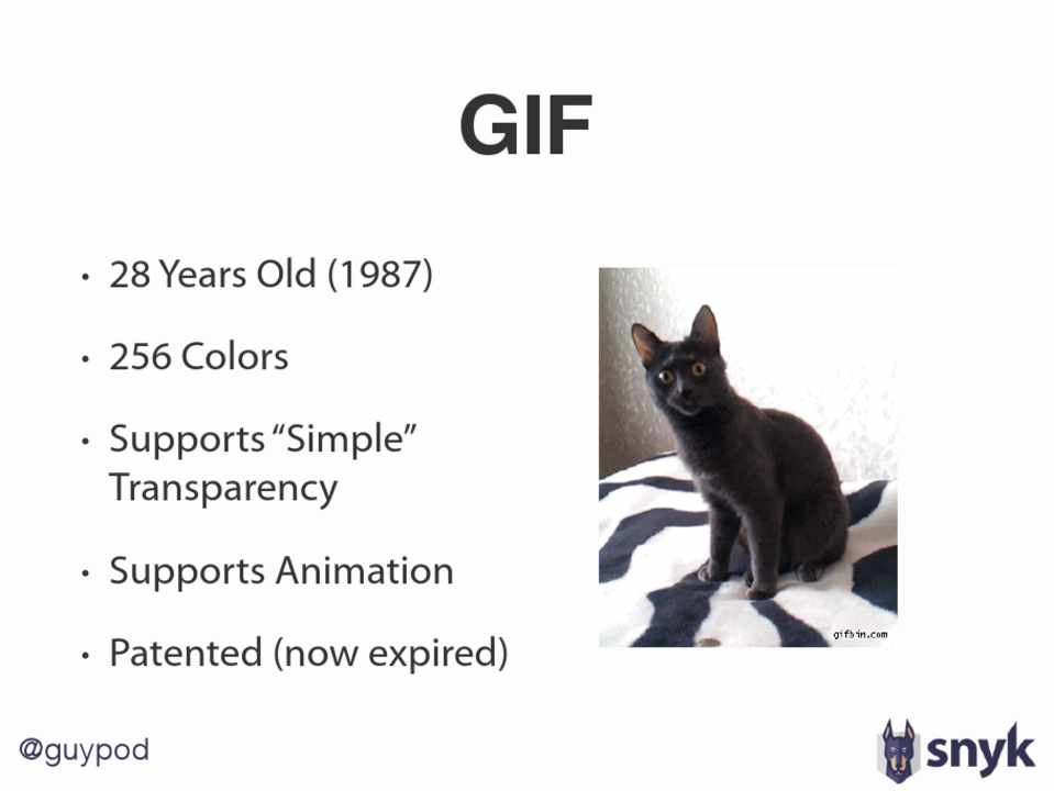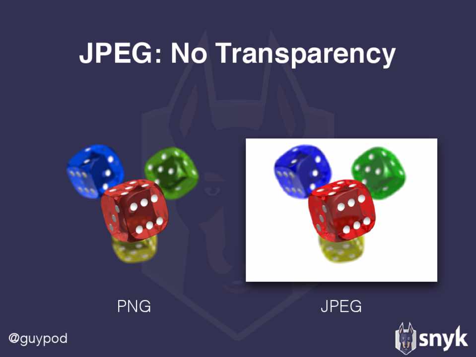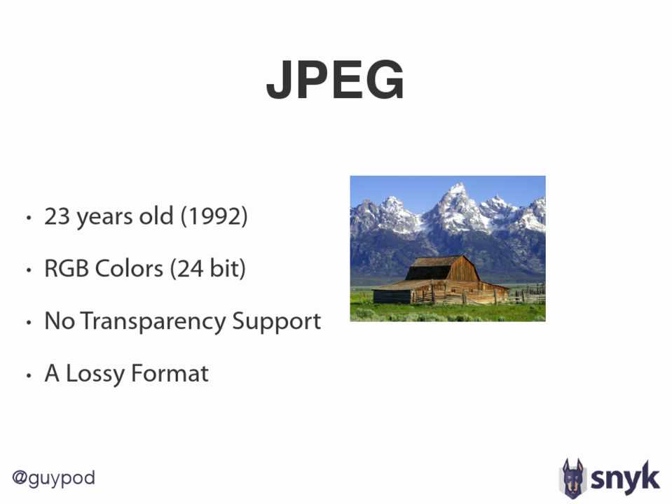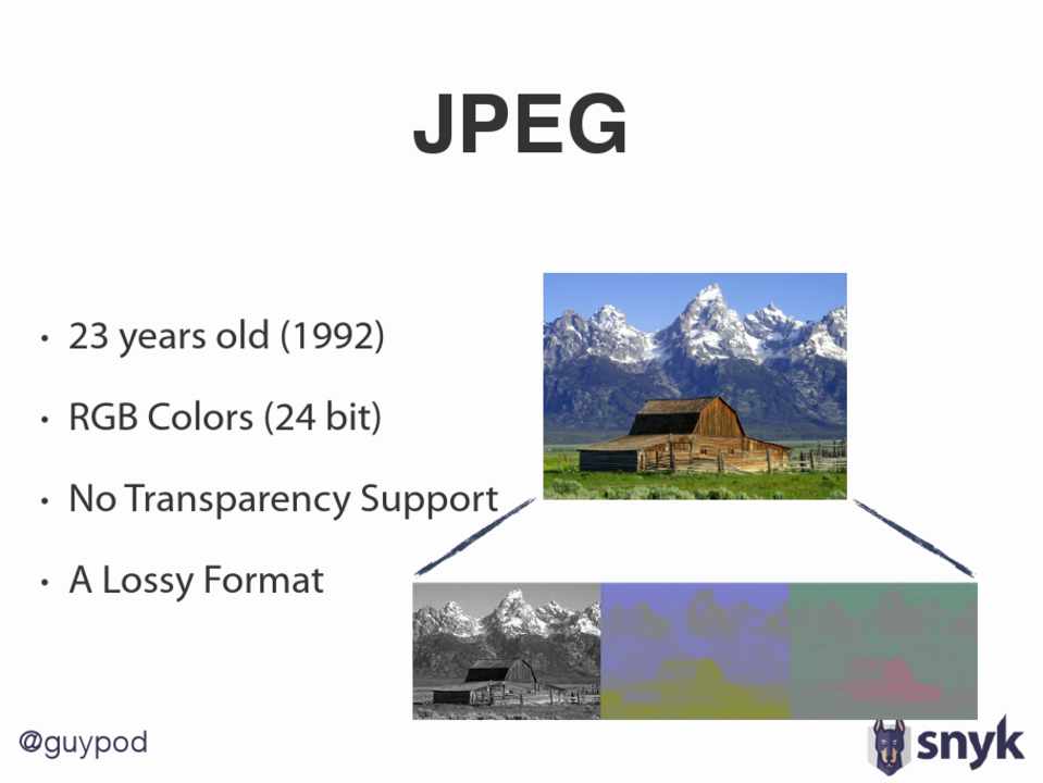 • 23 years old (1992) • RGB Colors (24 bit) • No Transparency Support • A Lossy Format