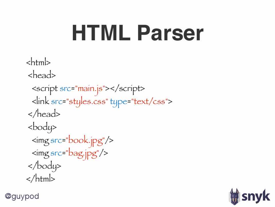 <html> <head> <script src="main.js"></script> <link src="styles.css" type="text/css"> </head> <body> <img src="book.jpg"/> <img src="bag.jpg"/> </body> </html>