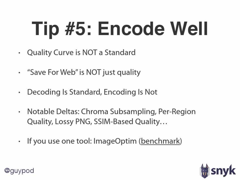 • Quality Curve is NOT a Standard • “Save For Web” is NOT just quality • Decoding Is Standard, Encoding Is Not • Notable Deltas: Chroma Subsampling, Per-Region