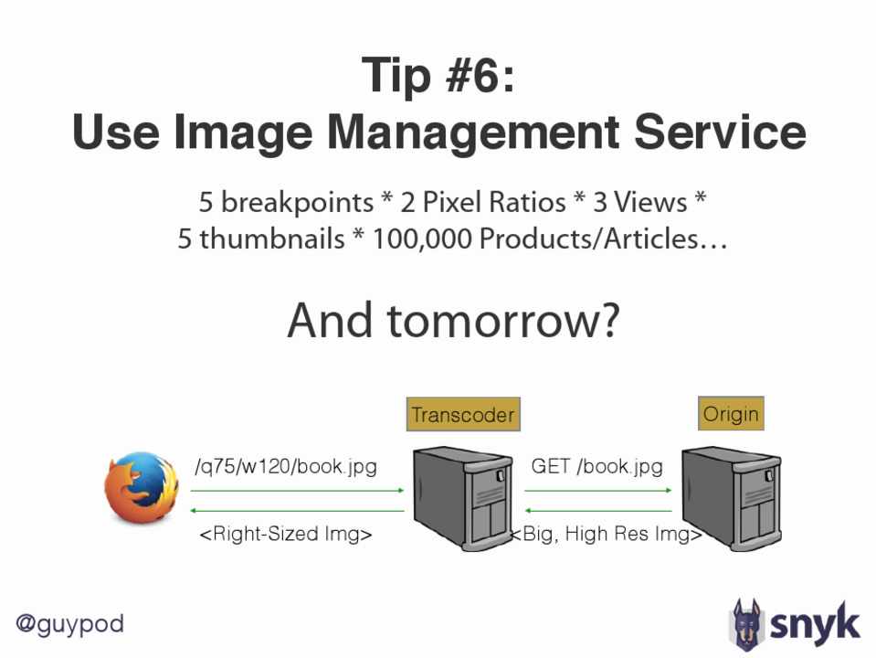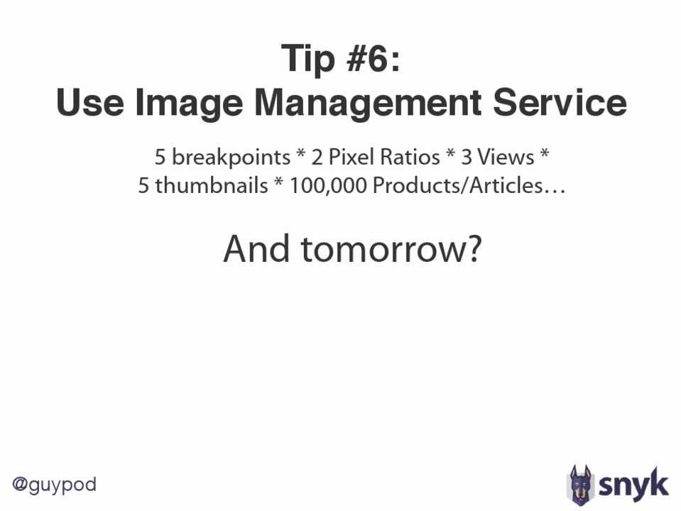 5 breakpoints * 2 Pixel Ratios * 3 Views * 5 thumbnails * 100,000 Products/Articles…