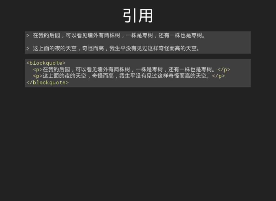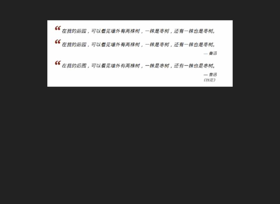 <blockquote> <p>在我的后园,可以看见墙外有两株树,一株是枣树,还有一株也是枣树。</p> <p>这上面的夜的天空,奇怪而高,我生平没有见过这样奇怪而高的天空。</p> </blockquote>