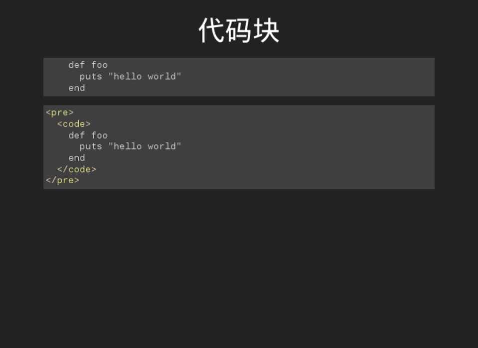 <pre> <code> deffoo puts"helloworld" end </code> </pre>