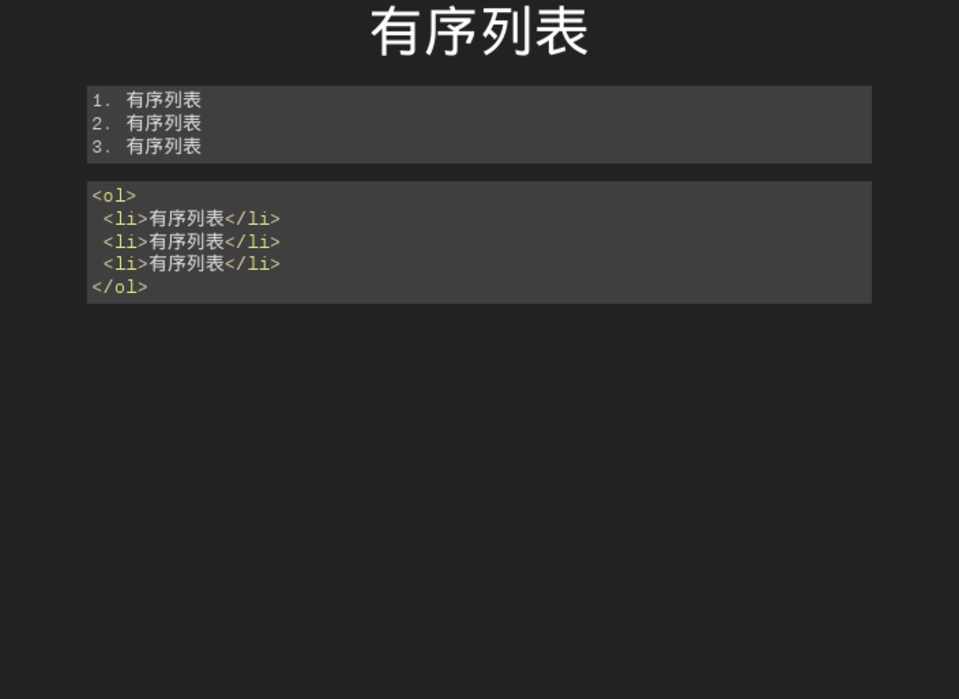 <ol> <li>有序列表</li> <li>有序列表</li> <li>有序列表</li> </ol>