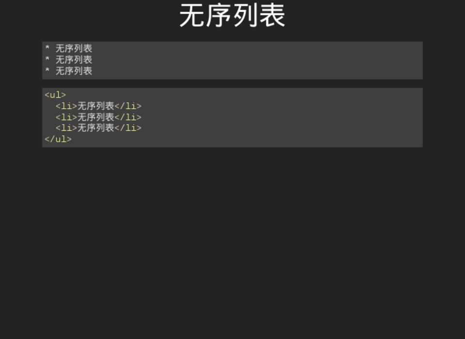 <ul> <li>无序列表</li> <li>无序列表</li> <li>无序列表</li> </ul>