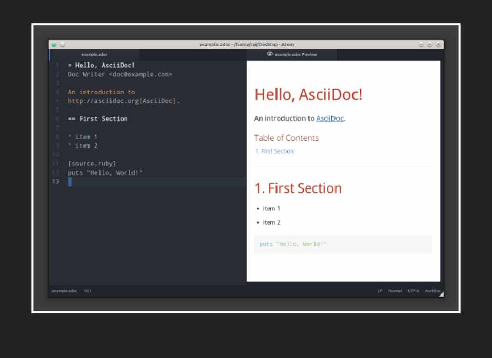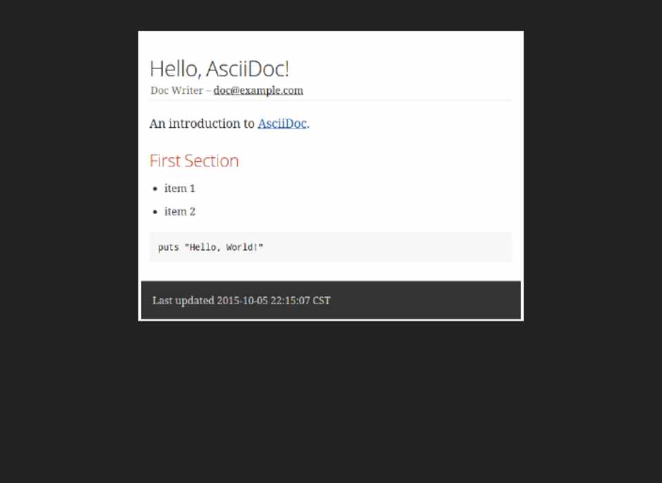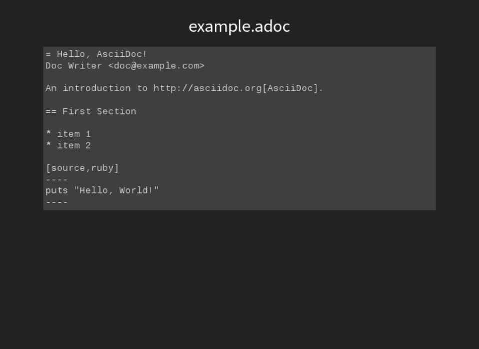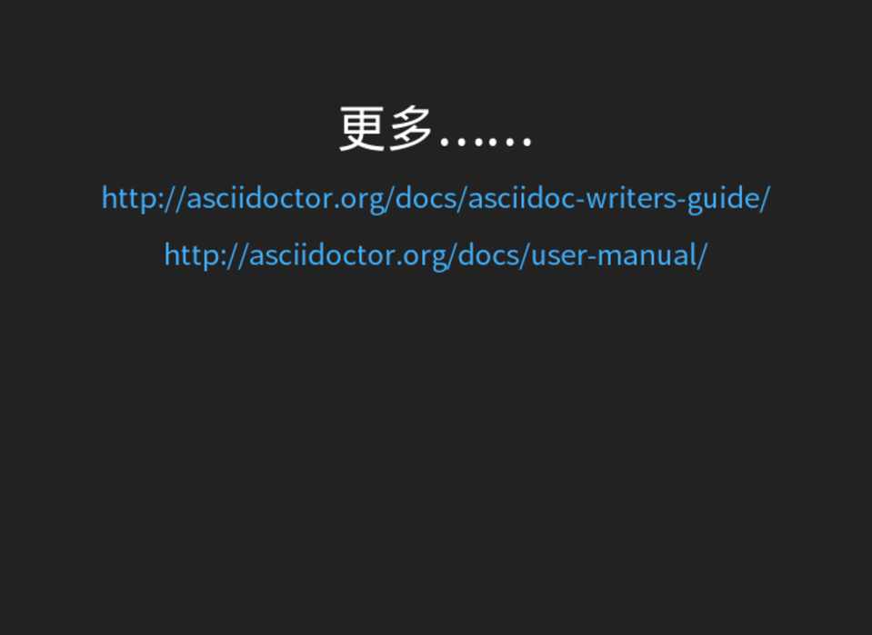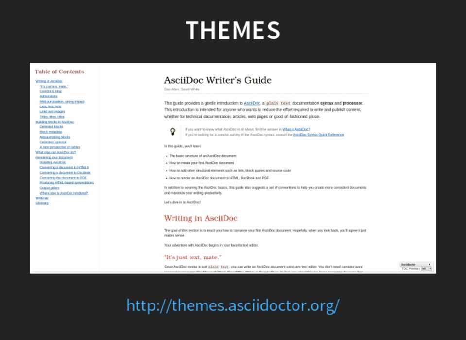 http://asciidoctor.org/docs/asciidoc-writers-guide/ http://asciidoctor.org/docs/user-manual/