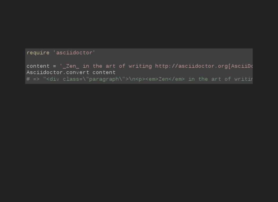 Asciidoctor AsciidoctorJ (via JRuby) Asciidoctor.js (via Opal)