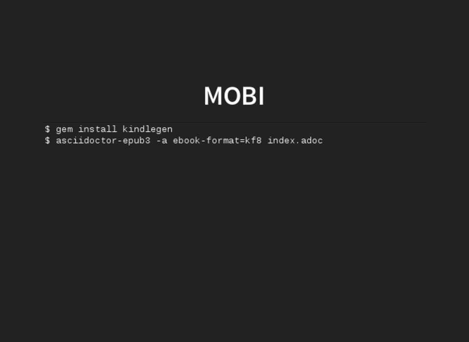 $geminstallkindlegen $asciidoctorepub3aebookformat=kf8index.adoc
