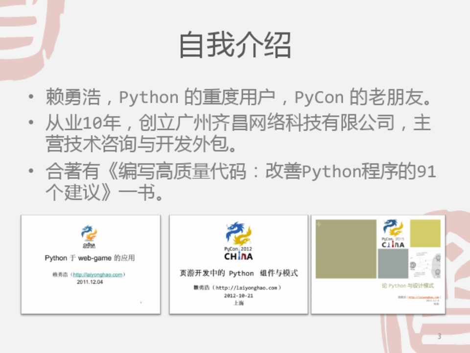 • 赖勇浩,Python 的重度用户,PyCon 的老朋友。