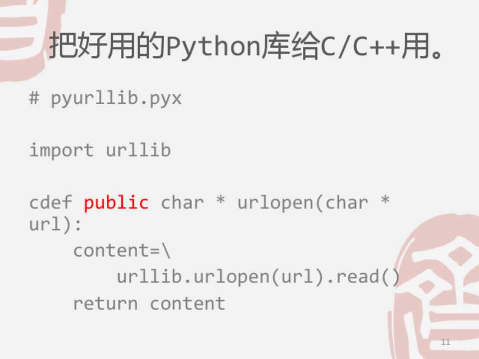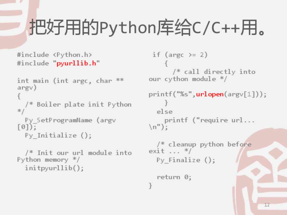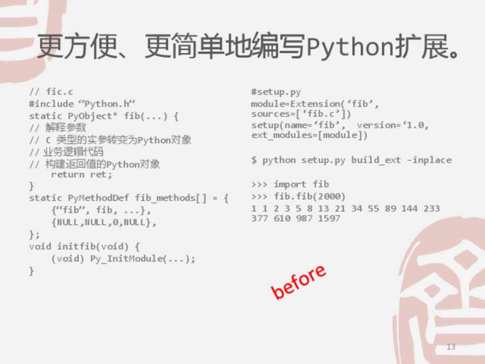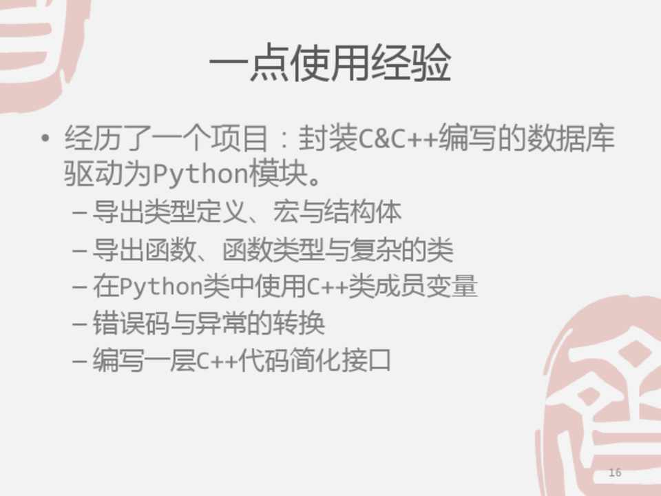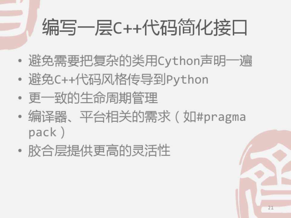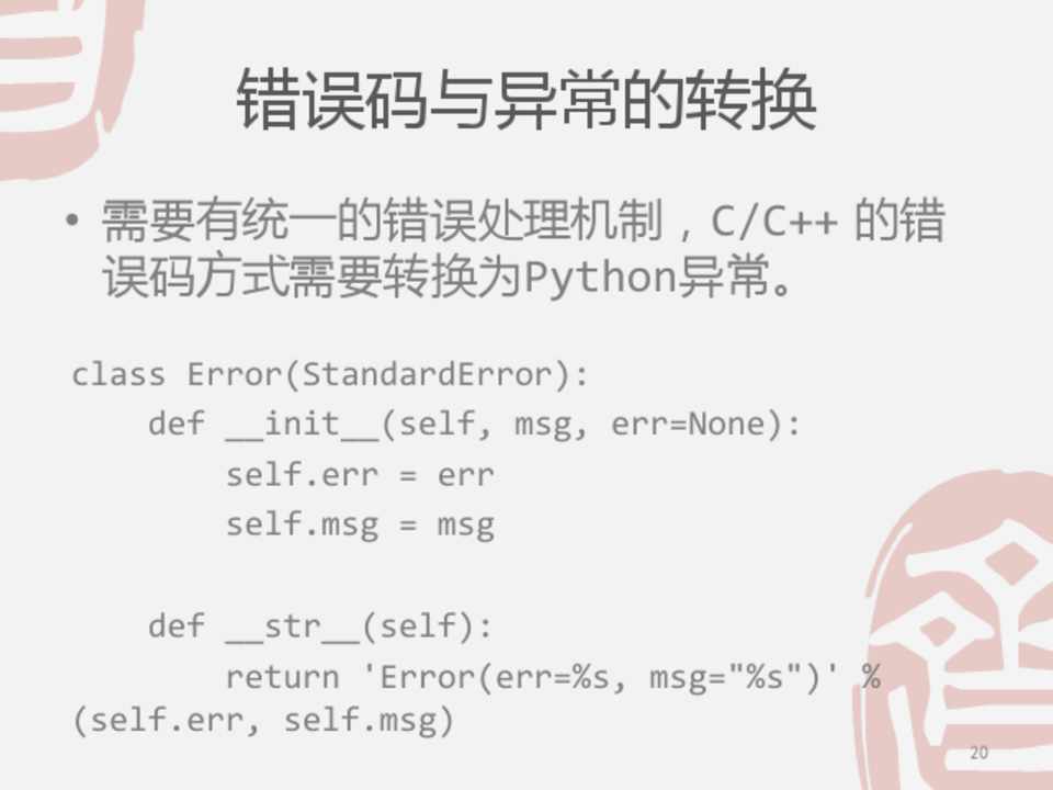 • 需要有统一的错误处理机制,C/C++ 的错 误码方式需要转换为Python异常。