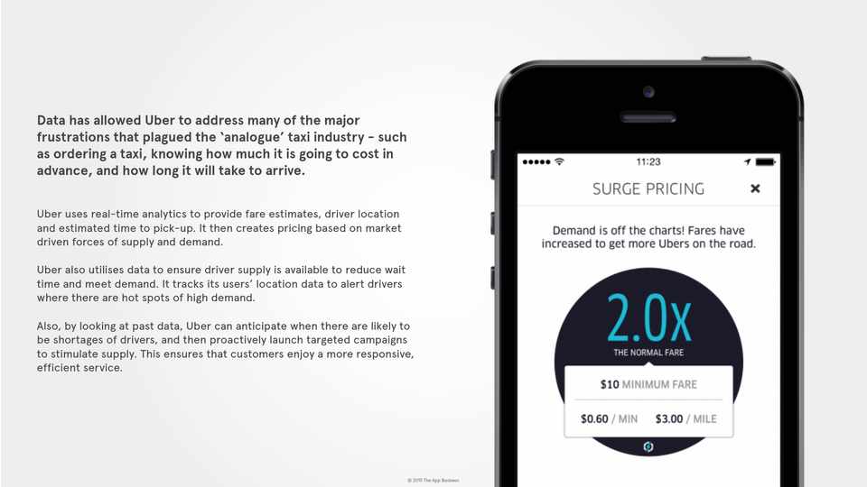 Data has allowed Uber to address many of the major frustrations that plagued the ‘analogue’ taxi industry - such as ordering a taxi, knowing how much it is going to cost in advance, and how long it will take to arrive.