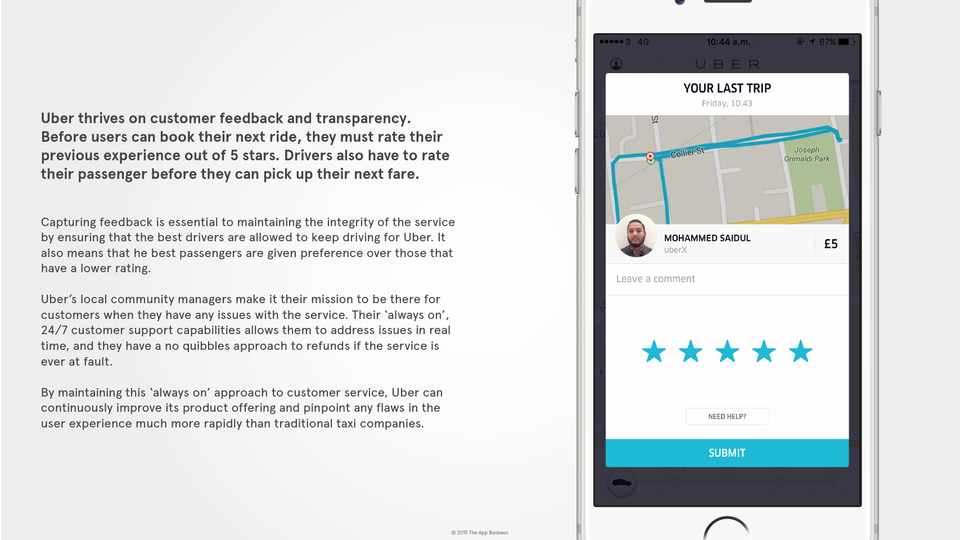 By maintaining this ‘always on’ approach to customer service, Uber can continuously improve its product offering and pinpoint any flaws in the user experience much more rapidly than traditional taxi companies.