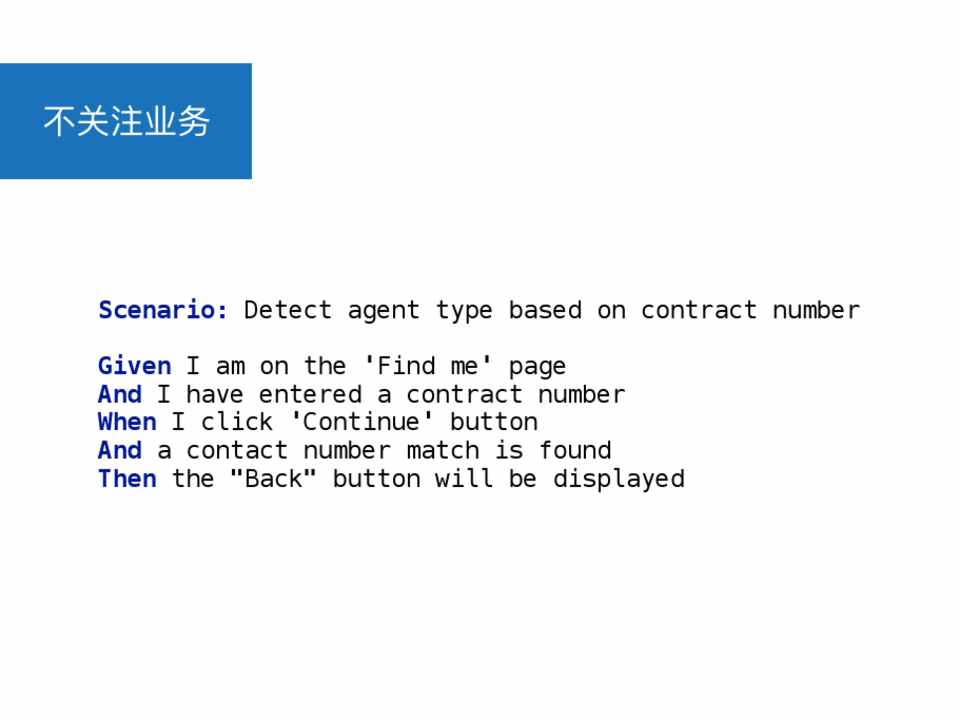 Scenario: Detect agent type based on contract number Given I ahmavoenath"eTi'eFdiAngdenmte"'ppoalgiecy AWnhdenIIhasvuebmeinttemryedcoantcroanctrancutmbneurm ber WThen I cslhiocukld'Cboentaisnkueed'fbourttmoynlast name And a contact number match is found Then the "Back" button will be displayed