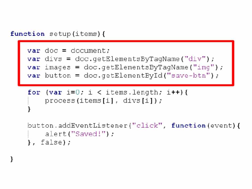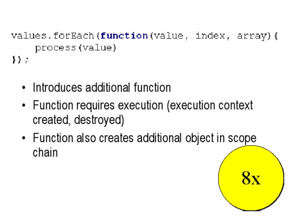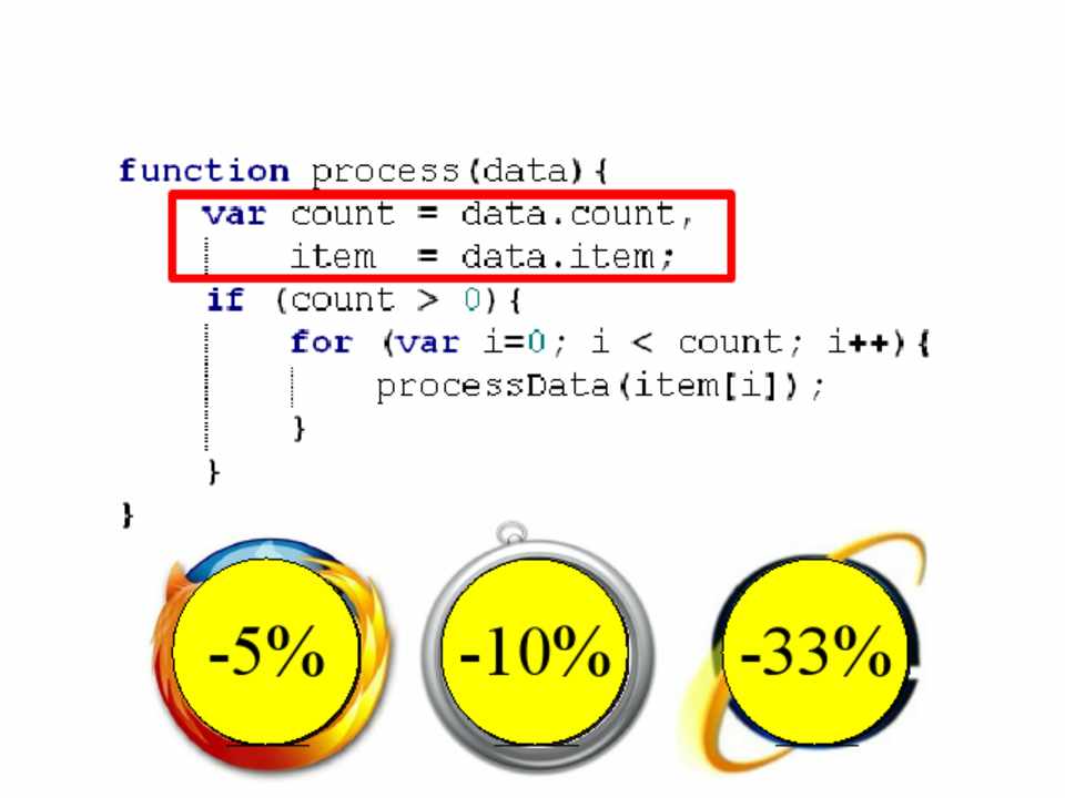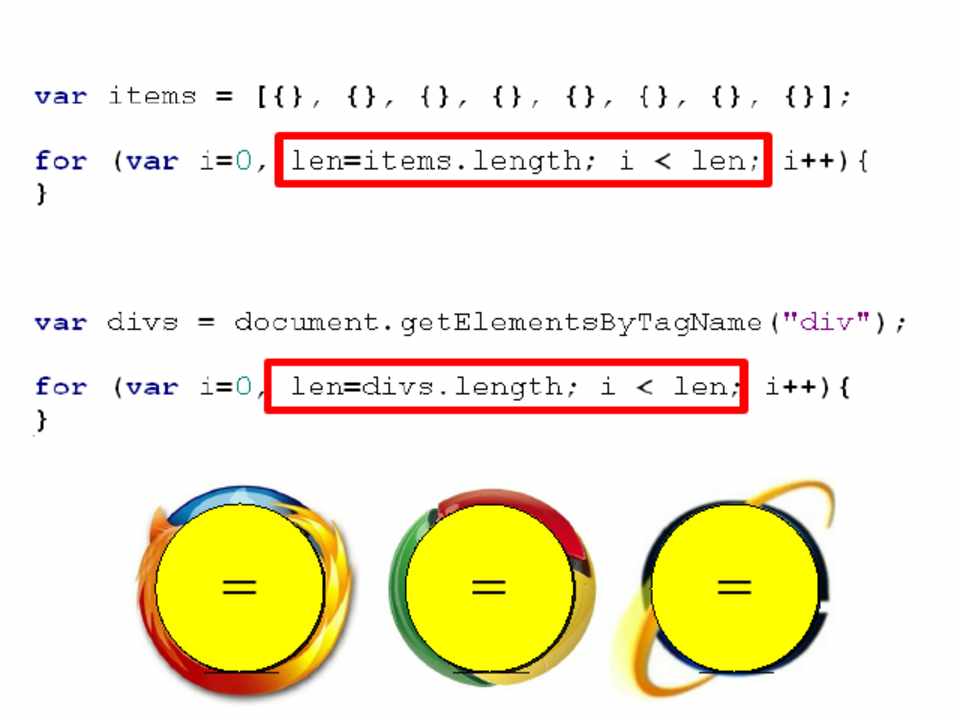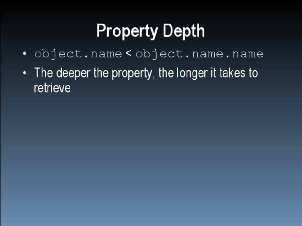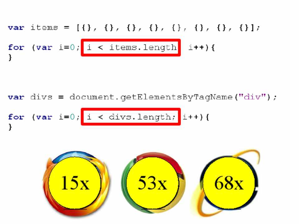 • Scope management • Data access • Loops • DOM • Browser limits